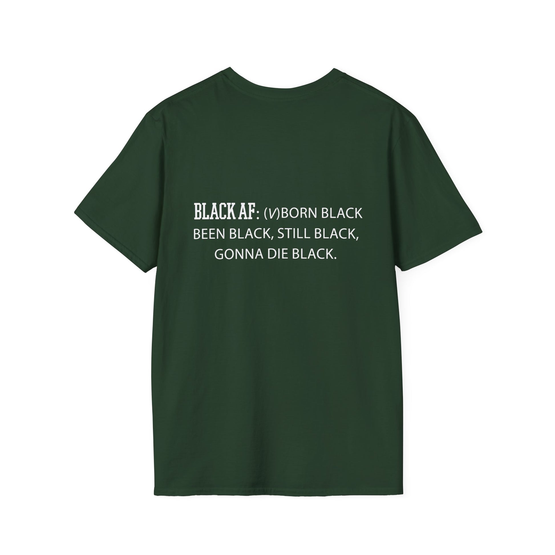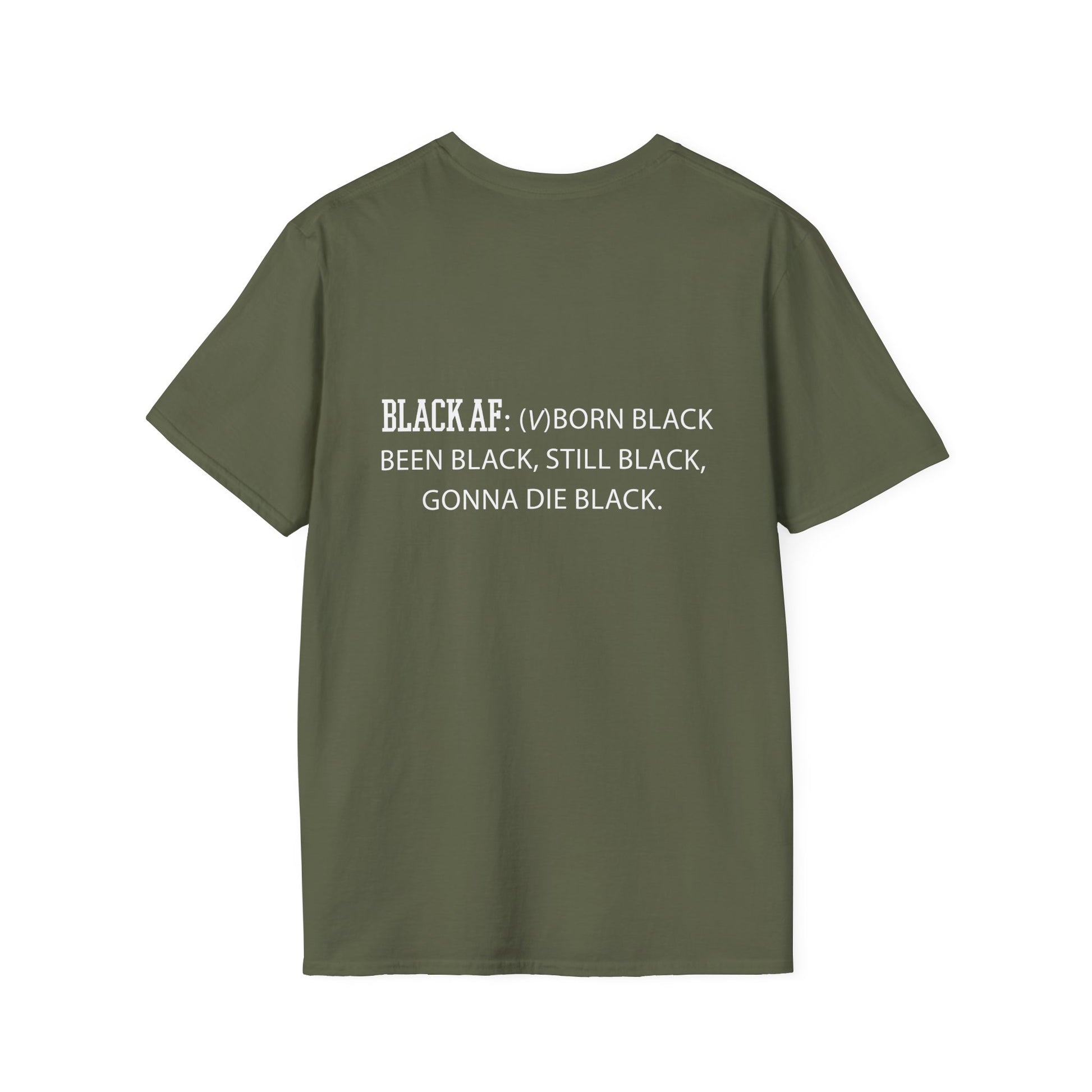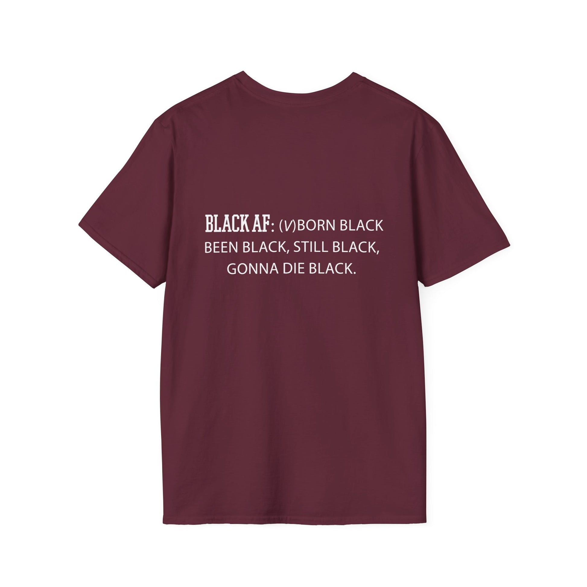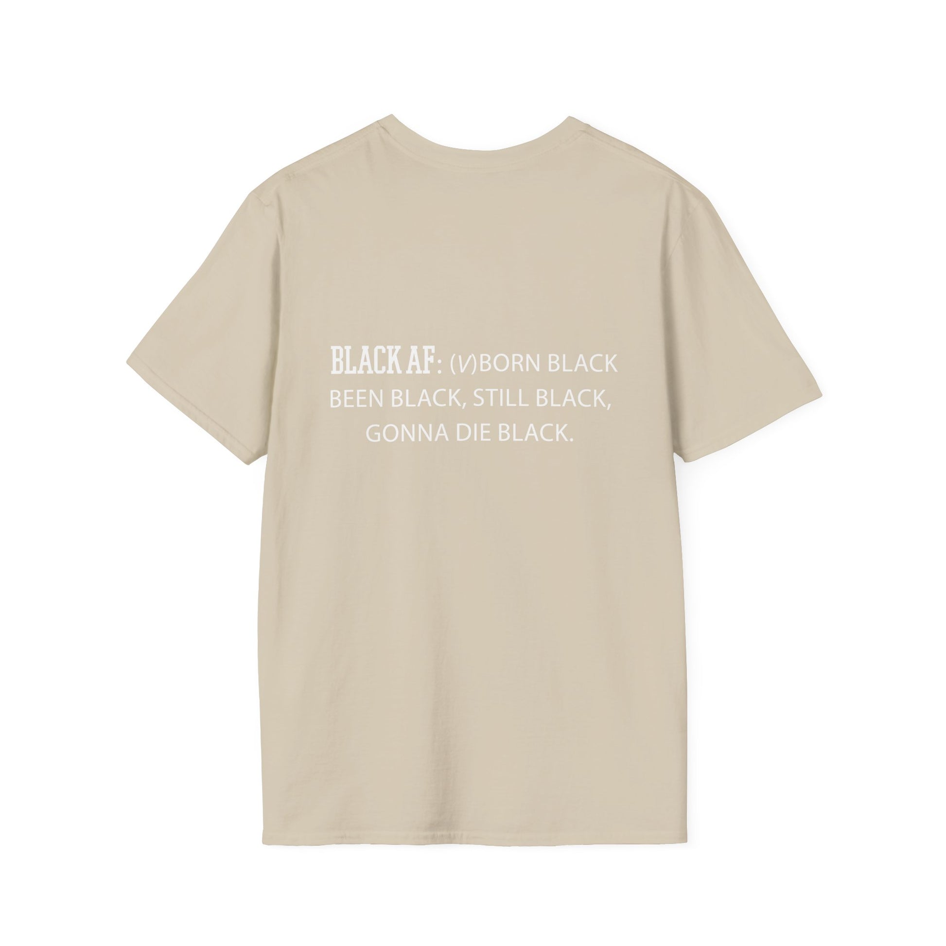 A bold and empowering unisex T-Shirt that makes a statement with 'black af' on the front and 'born black, been black, gonna die black' on the back. Perfect for those who embrace their black identity and want to show it proudly. Ideal for Black History Month, Juneteenth, and everyday wear.